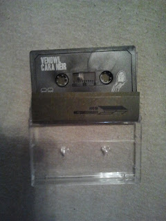 The B side of this tape contains a new track from Venowl and three songs from Cara Neir, whose aggression has already graced this blog. Venowl's contribution, simply titled "III," provides a stark contrast to the melodic tones of the prior two groups, delving into the fuzz and filth that I so often speak about throughout this blog. The pace is slow, the guitars and drums tend to attack at the same moment, making each pulse of the song painfully delightful. This feels like it was recorded in a poorly lit basement in the true fashion of classic black metal, but with a different take on the sounds of the genre. The vocals are shrill and tormented, the production is murky yet does nothing to mar the intensity here, and the band's dissonant attack on the listener provides little to soothe or relieve the tension they create. The entire song makes me feel like I'm being dragged headfirst down a stairwell into a dungeon while hearing the screams of other prisoners. I'd love to know what the lyrics are, as I have a feeling these guys have some pretty dark inspirations behind their hideous assault. Closing this split are three intense cuts from Cara Neir, starting with the pitch black fury of "Minus His Confidence." While the band certainly haven't given up their outside influences, this song is as close to pure black metal as anything I've heard from them and it absolutely shreds. Despite the absurd pace of the song, these guys still manage to fit in a break for a wild guitar solo and a few other little touches of brilliance. For a pair of young musicians, these guys are quickly carving out a niche for themselves, and hopefully other equally talented groups will begin to follow suit. The meaty punk-inspired blackness of "No Right Path" feels like another full-on assault, although it's a fraction of the length of closing masterpiece, "Seize and Exist." This seven minute tune returns to more of Cara Neir's trademark territory, opening with chaos all across the board that hones itself into a pummeling blackened attack, marching forcefully onward just long enough to surprise the listener when the song breaks down into a spacey dirge a couple of minutes in. For a band drawing from such a broad range of influences, these guys continue to impress me with their ability to meld it all together without sounding forced or pretentious.